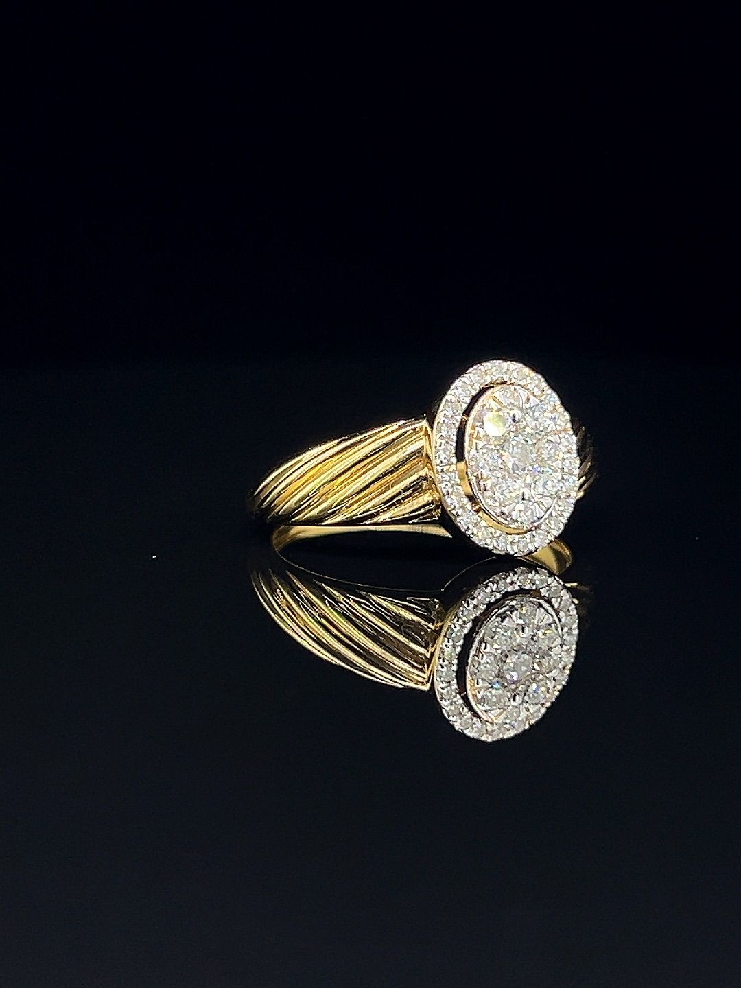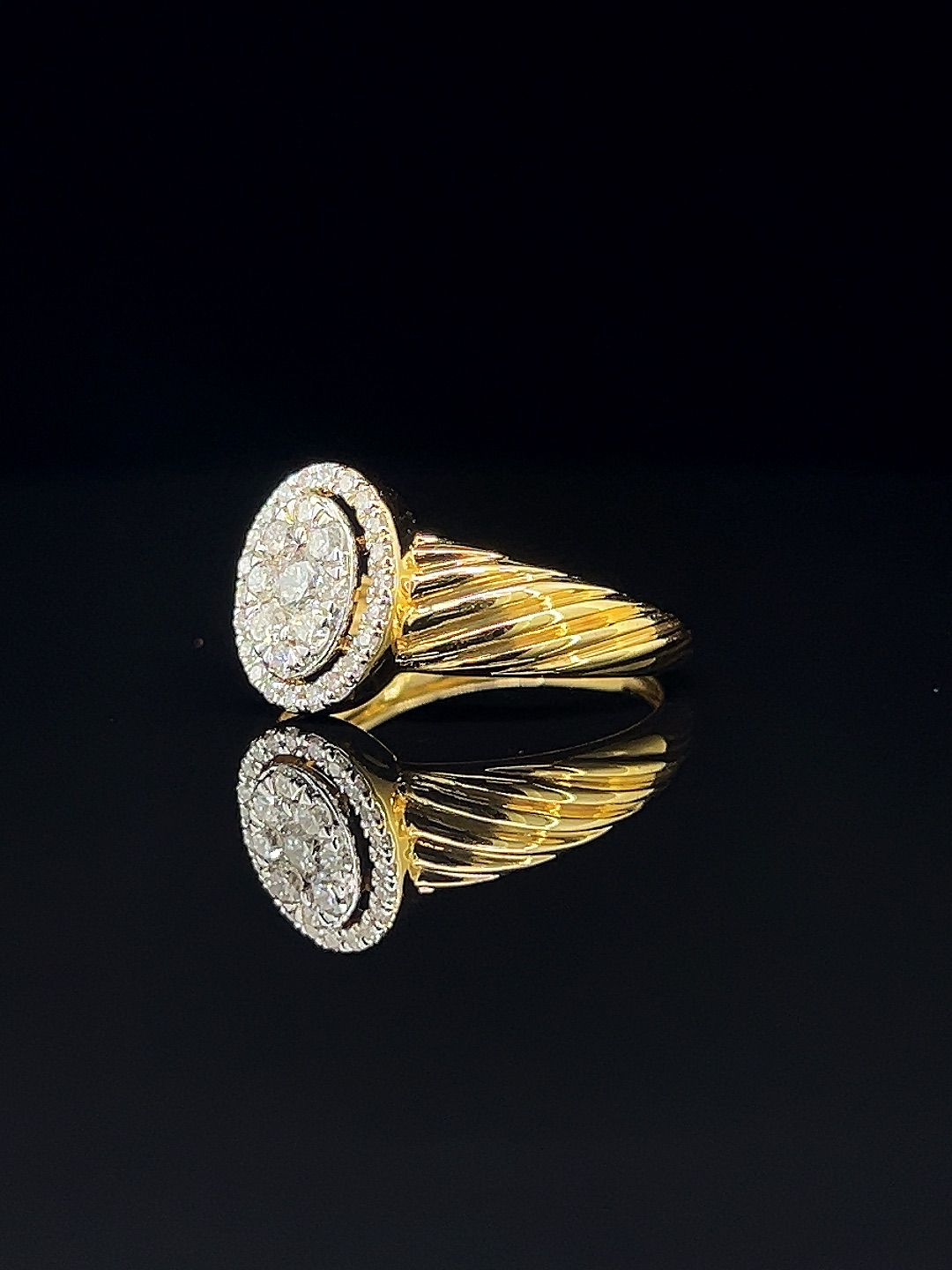 The Elysian Oval diamond ring radiates classic glamour and timeless sophistication. Set atop a polished multi-band gold shank, its centerpiece—a dazzling oval cluster of diamonds—is surrounded by a brilliant halo, reflecting exceptional craftsmanship and attention to detail. This ring’s refined silhouette draws inspiration from regal traditions, while the secure and comfortable fit ensures effortless wear for festivities and everyday indulgence. Each diamond is meticulously selected for clarity and fire, allowing the oval center to shimmer from every angle. Perfect for weddings, anniversaries, or memorable gifting, the Elysian Oval ring blends tradition with contemporary flair, adding a luminous finishing touch to any jewelry collection.