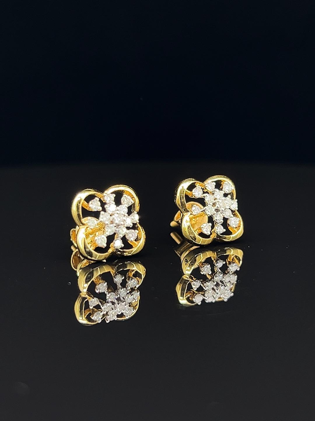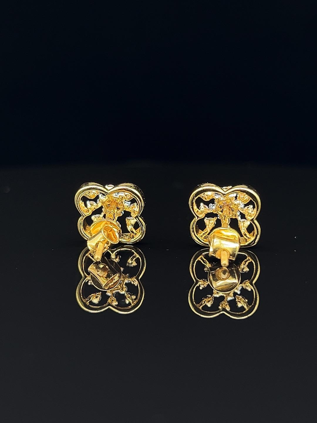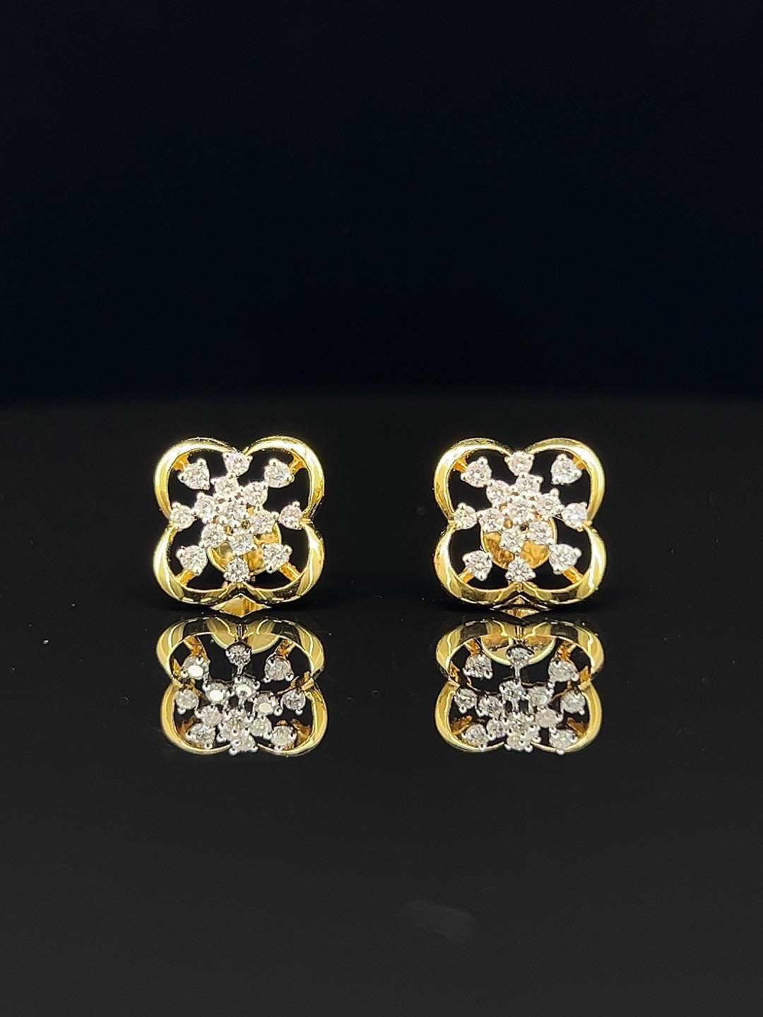 Flora Square diamond earrings in gleaming gold, featuring open square floral motifs with radiant diamond clusters—charming, elegant, and ideal for festive or everyday wear.