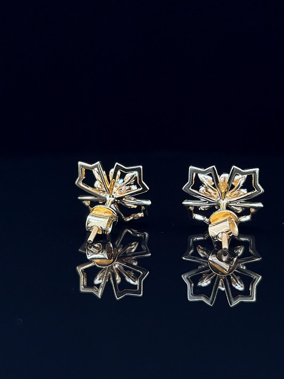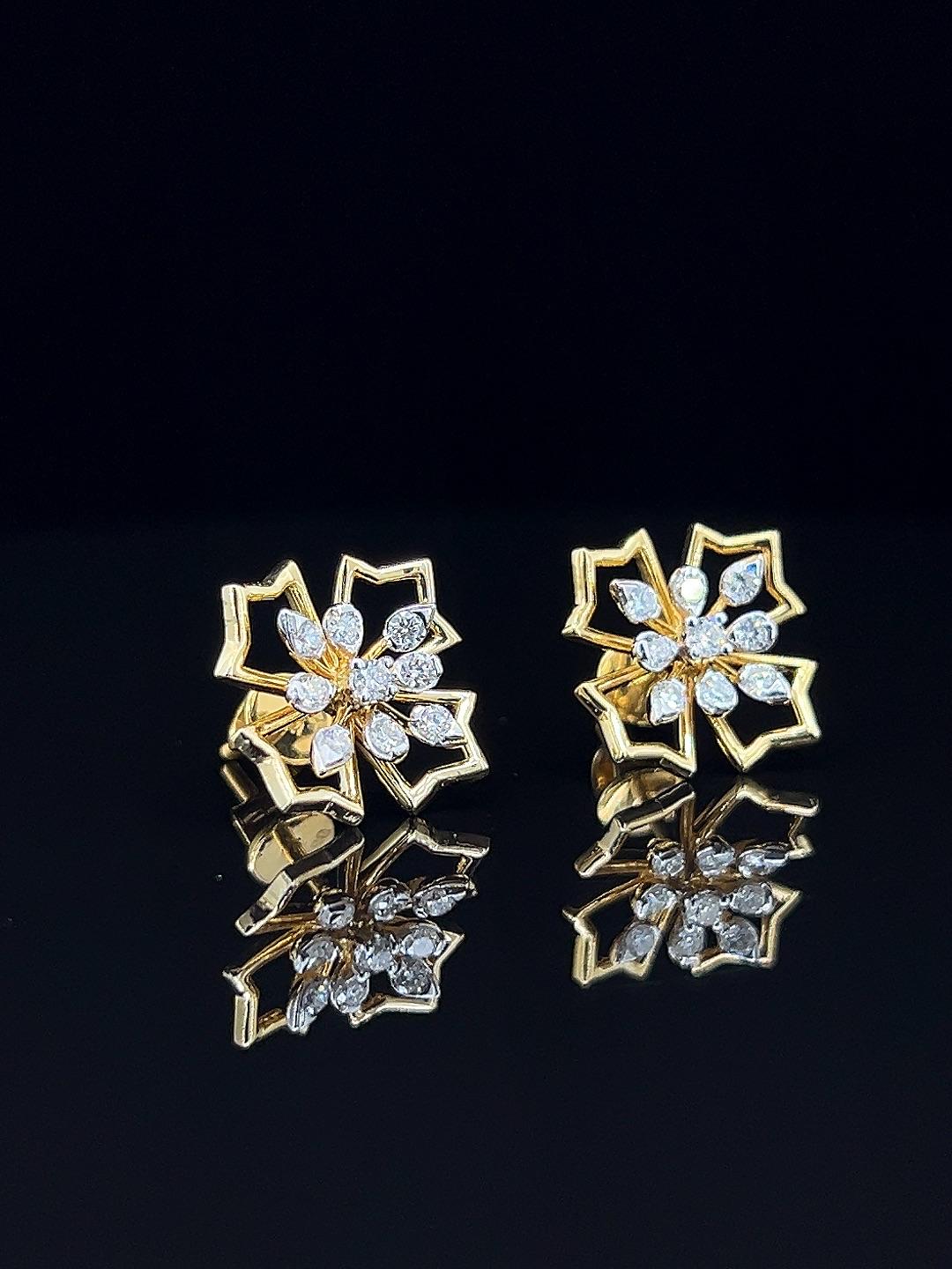 The Frost Bloom diamond earrings capture the magic of winter and the elegance of nature in a dazzling floral design. Each earring is set in radiant gold, shaped as a delicate snowflake or frosted blossom, with the petals intricately outlined and accented by brilliant diamonds for maximum sparkle. The artful arrangement blends classic beauty with a fresh, playful spirit, making these earrings ideal for festive celebrations, elegant evenings, or as thoughtful gifts. Lightweight and comfortable, Frost Bloom earrings complement both traditional and contemporary styles, adding a hint of luxury and originality to every look. Their imaginative craftsmanship and radiant finish make them a standout addition to any jewelry collection.