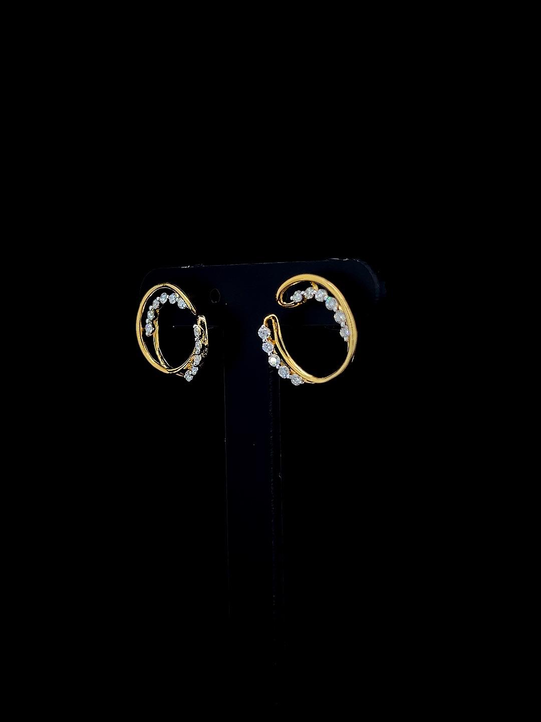 Gleam Arc diamond earrings combine minimalist elegance with dynamic sparkle, showcasing open crescent-shaped gold arcs delicately set with a series of brilliant diamonds. The light, airy design creates fluid movement and catches the eye with dazzling radiance, making these earrings an effortless statement for festive occasions or sophisticated daily style. Their comfortable fit and timeless silhouette ensure easy pairing with both ethnic and contemporary outfits, offering versatility and lasting appeal. Ideal for gifting or personal indulgence, Gleam Arc earrings embody the fusion of classic refinement and modern artistry in every detail.