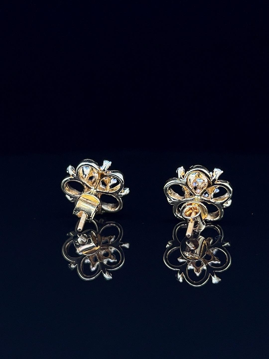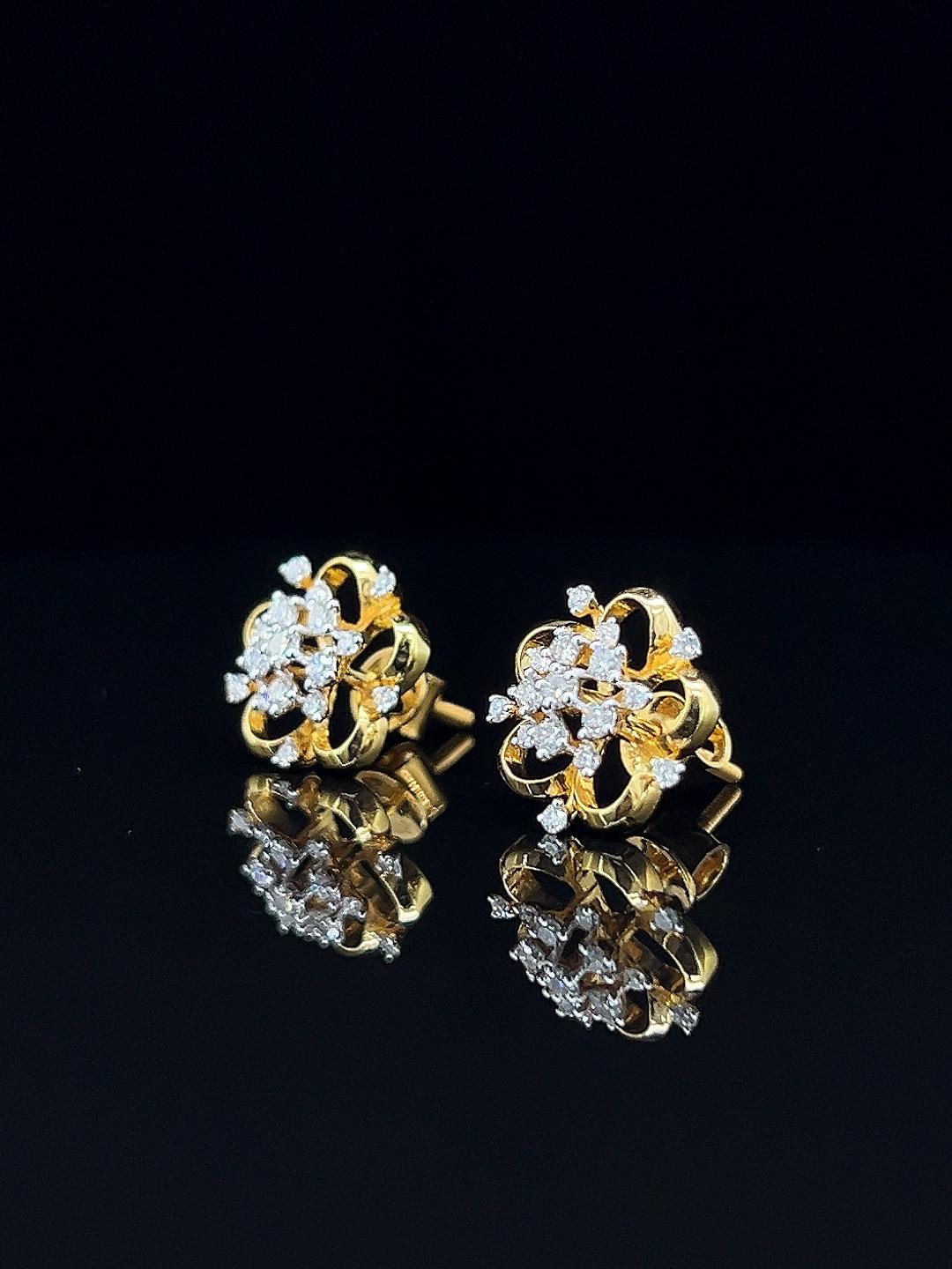 The Glory Petals diamond earrings evoke the richness of a blossoming garden, showcasing intricate layers of gold petals set with a constellation of sparkling diamonds. Each earring presents a distinct floral motif, artfully designed for maximum brilliance and graceful movement, making them standouts for weddings, celebrations, or sophisticated gifting. The blend of golden openwork and clustered diamonds ensures a lightweight feel with luxurious presence, perfect for day-to-evening transition. With feminine charm and exquisite detailing, Glory Petals earrings beautifully complement ethnic attire or contemporary styles, adding a radiant accent to any collection. Their artistic craftsmanship and festive glamour highlight the uniqueness of every moment.