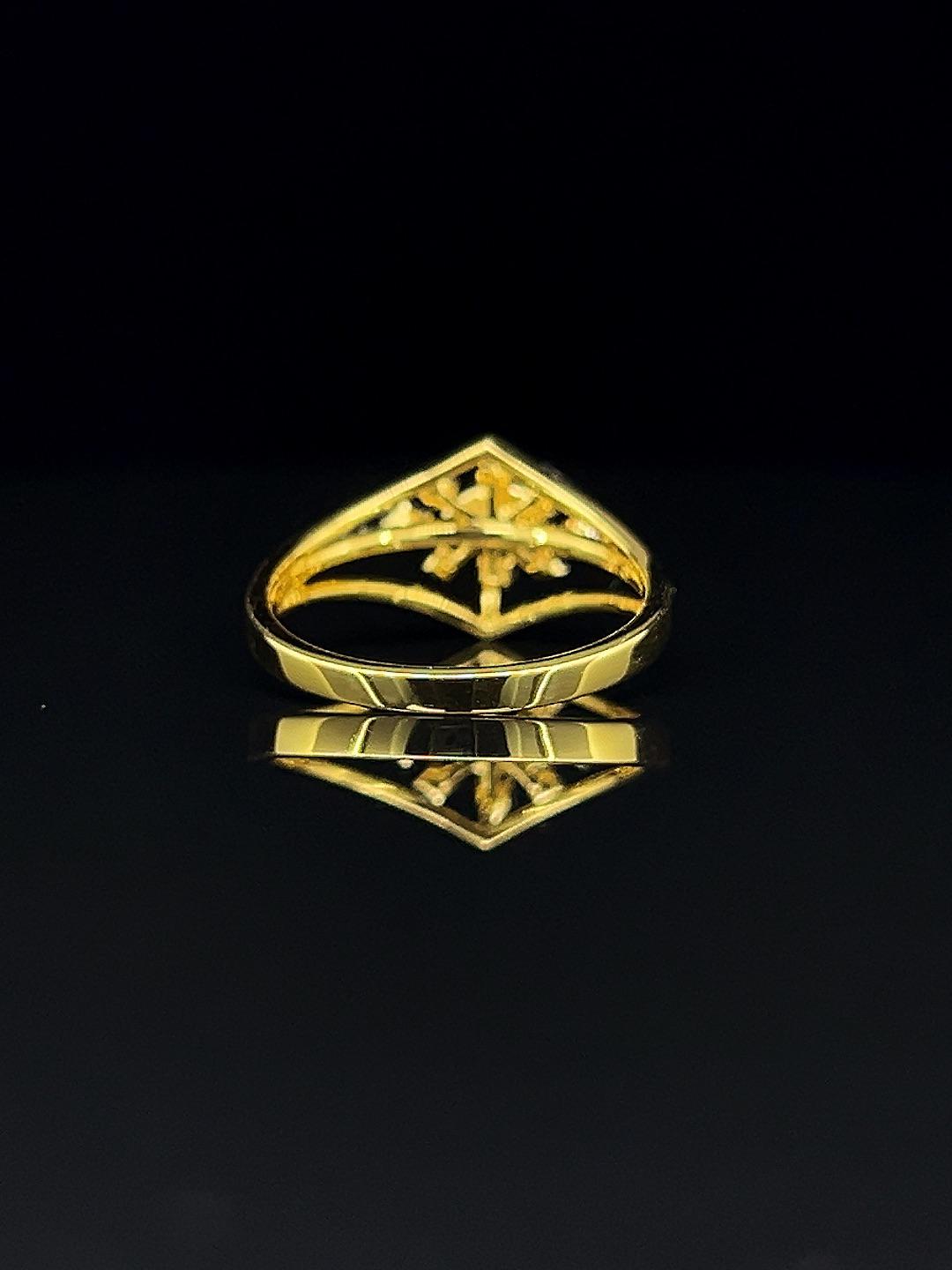Queen’s Gaze diamond ring in luminous gold, showcasing a majestic marquise diamond center with regal crown-inspired motifs and glittering pavé accents—crafted for bold, elegant style.