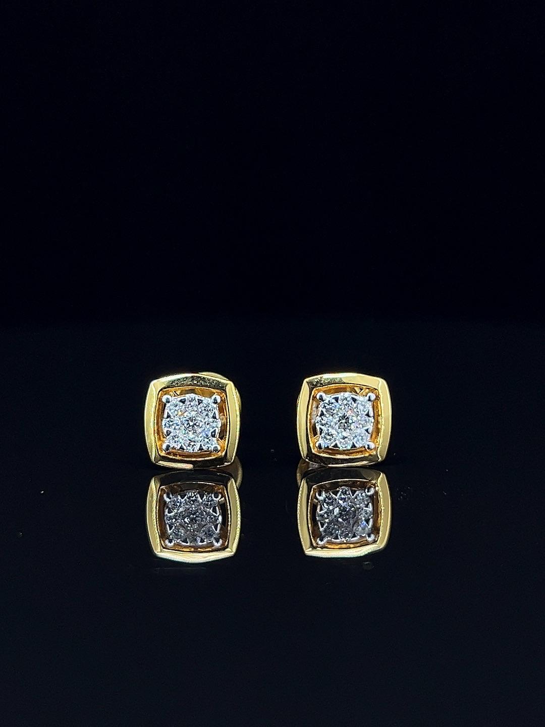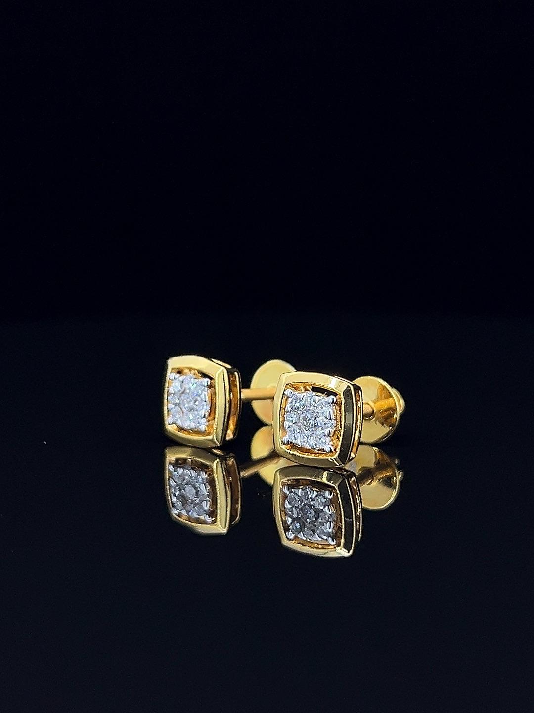 Sparkle Square diamond studs in polished gold, showcasing luminous square-shaped diamond clusters—sleek, elegant, and perfect for daily sparkle or special occasions.