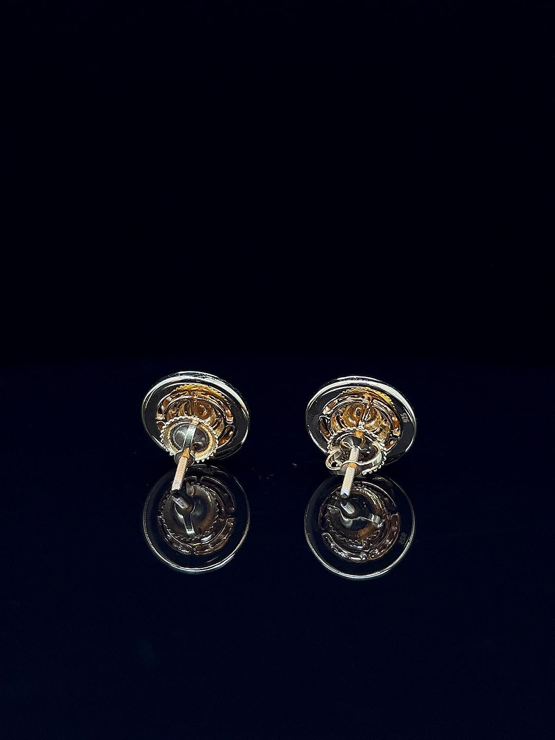 Inspired by the joyful energy of the sunflower and the brilliance of the sun, the Suryamukhi Spark diamond studs combine radiant texture with dazzling shine. Each stud features a unique gold sunburst pattern, centered with a luminous diamond and surrounded by a sparkling diamond-encrusted halo that amplifies light from every angle. Carefully crafted to offer bold visual impact in a lightweight design, these earrings are perfect for celebratory events, gifting, or adding a statement to everyday wear. Their vibrant silhouette ensures they pair beautifully with traditional and contemporary attire, making them a cherished addition to any collection. Suryamukhi Spark studs capture the spirit of sunlight and festive glamour in every detail.