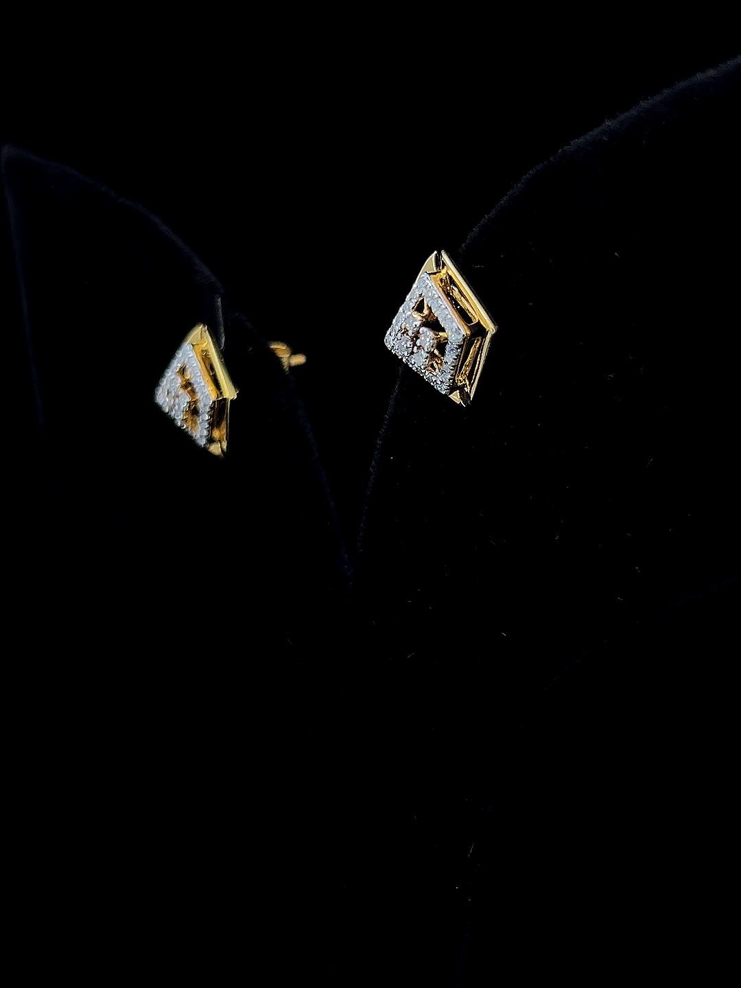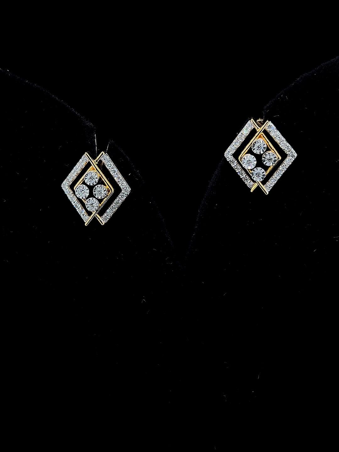 - Verta Square diamond earrings bring architectural flair to fine jewelry with their striking double-layered square silhouette. Each earring showcases a radiant central diamond cluster, framed by concentric pavé-set squares in gleaming gold for a harmonious blend of sparkle and modern design. Lightweight and bold, these earrings are perfect for adding sophistication to festive attire, office wear, or thoughtful gifting. Their inventive geometric structure enhances dimension and movement, providing both comfort and standout presence. Verta Square earrings offer timeless charm and stylish versatility for those who appreciate modern artistry in classic forms.